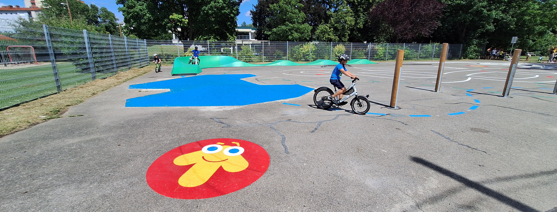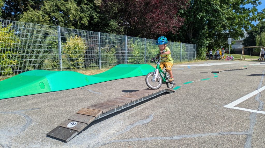 Diese Plätze bieten ein abwechslungsreiches Übungsumfeld mit Elementen wie Pumptrack-Modulen, Randstein-Simulatoren, Slalomstrecken und vielfältigen Untergründen, die helfen, Fahrradtechnik, Koordination und Selbstvertrauen zu stärken.