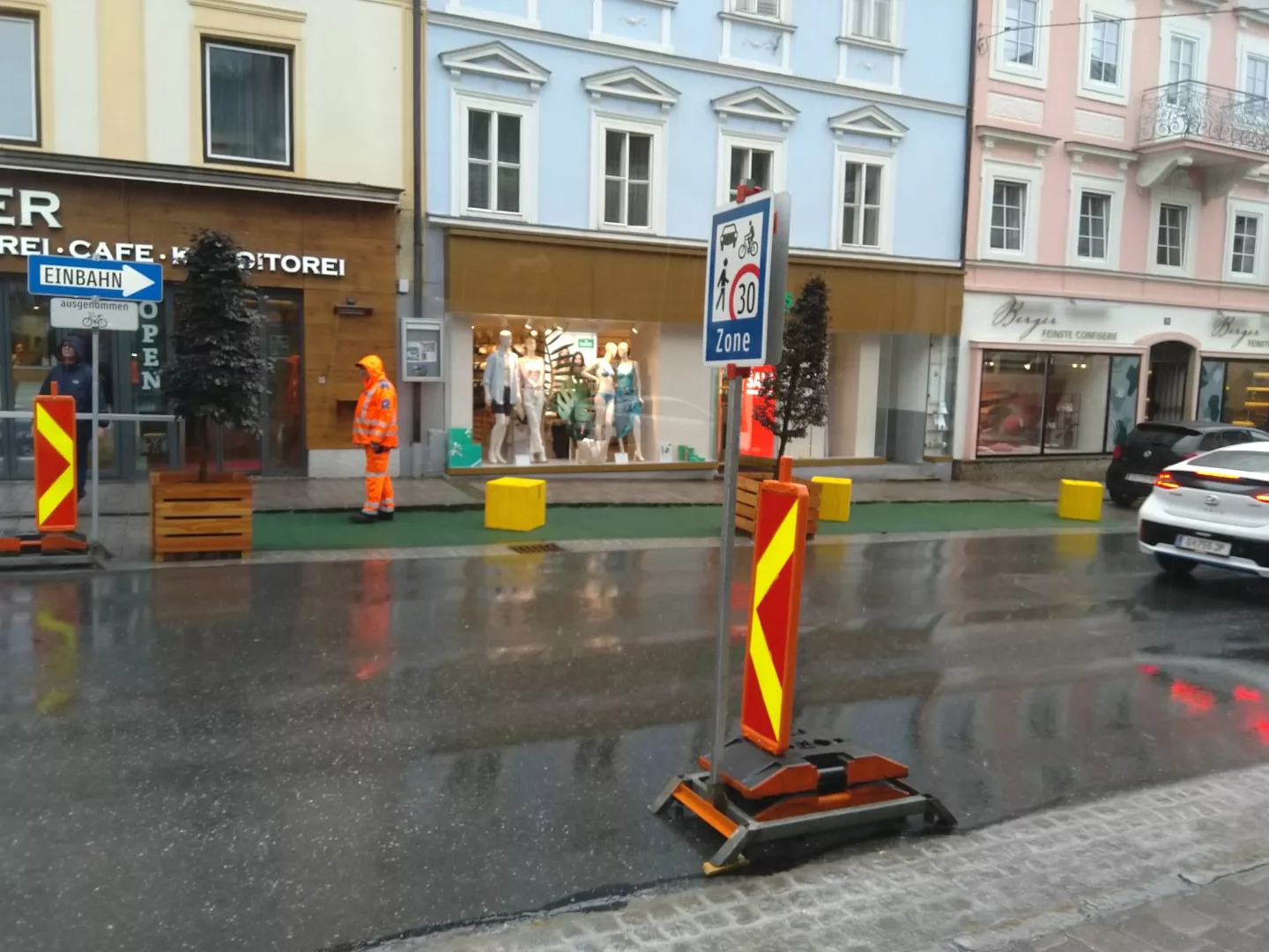 „Alles Gute kommt von oben“ heißt es sprichwörtlich. Dann soll der strömende Regen am ersten Tag ein gutes Zeichen sein, für den dreimonatigen Pilotversuch in St. Johann im Pongau. Ein umfangreiches Update des Verkehrsregimes ermöglicht die Begegnungszone im Obermarkt sowie einen temporären Radweg und eine Fahrradstraße. Alles Bausteine für ein nachhaltiges städtisches Verkehrssystem. Multimodal unterwegs – zu Fuß, mit dem Rad und dem Auto und natürlich auch mit dem Citybus. Dieser wird ab 6. Juli jede halbe Stunde den Ortsteil Reinbach mit dem Zentrum verbinden.