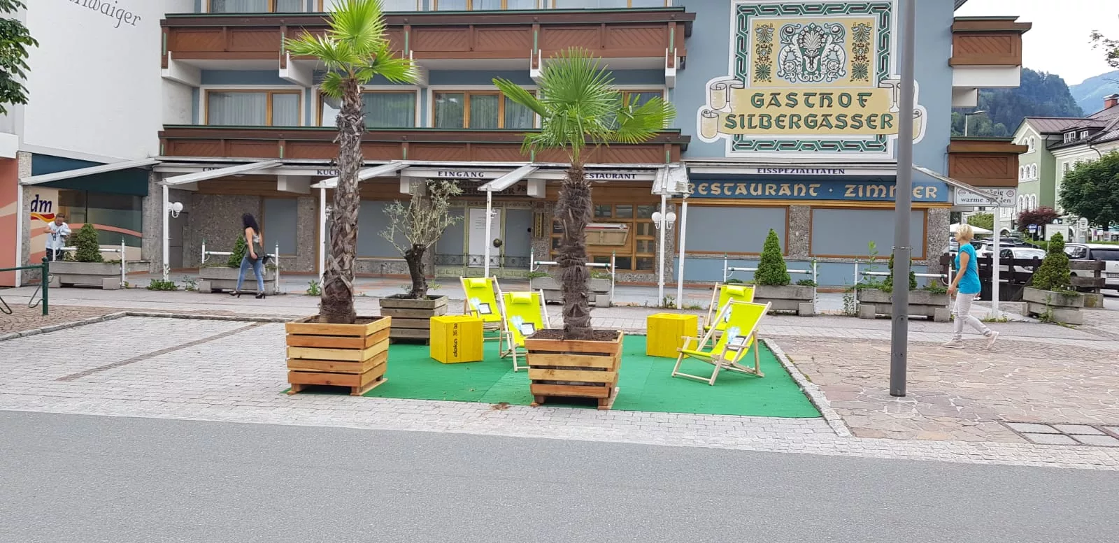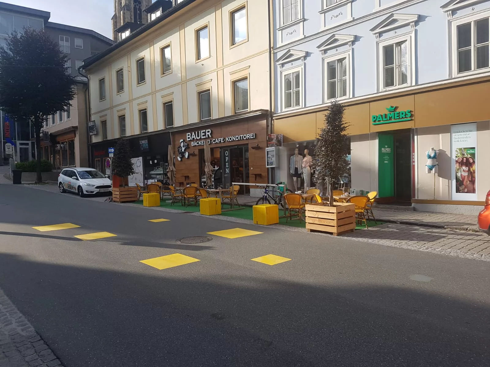 Neue Gastgärten prägen das Stadtbild von St. Johann.