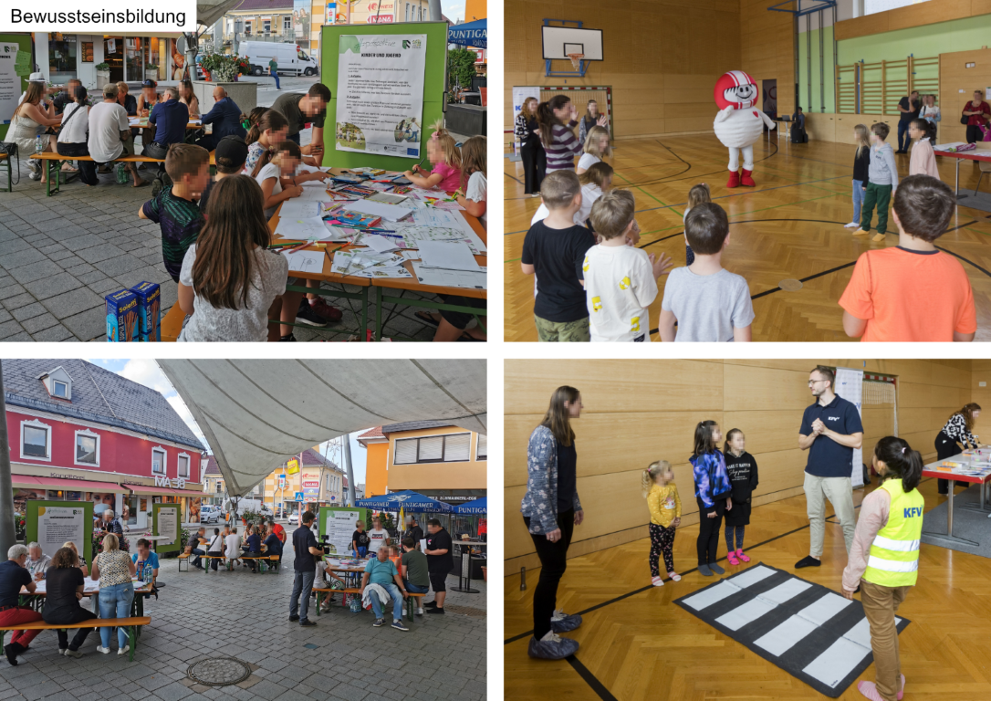 Neben den baulichen Maßnahmen setzt die Stadt auch auf Bewusstseinsbildung: So besuchte „Helmi“ die Volksschule, um den sicheren Schulweg zu thematisieren, und am Platzlmarkt wurden Bürger:innen aktiv in die Gestaltung eingebunden.