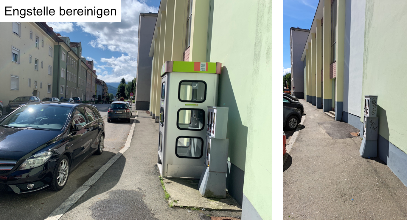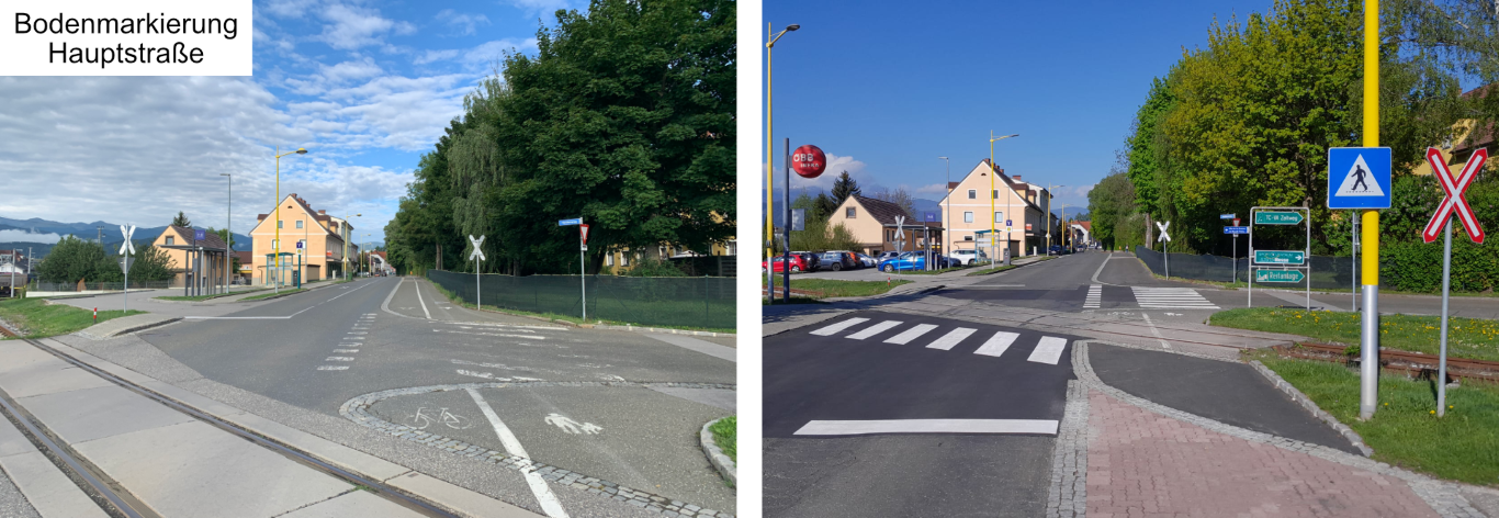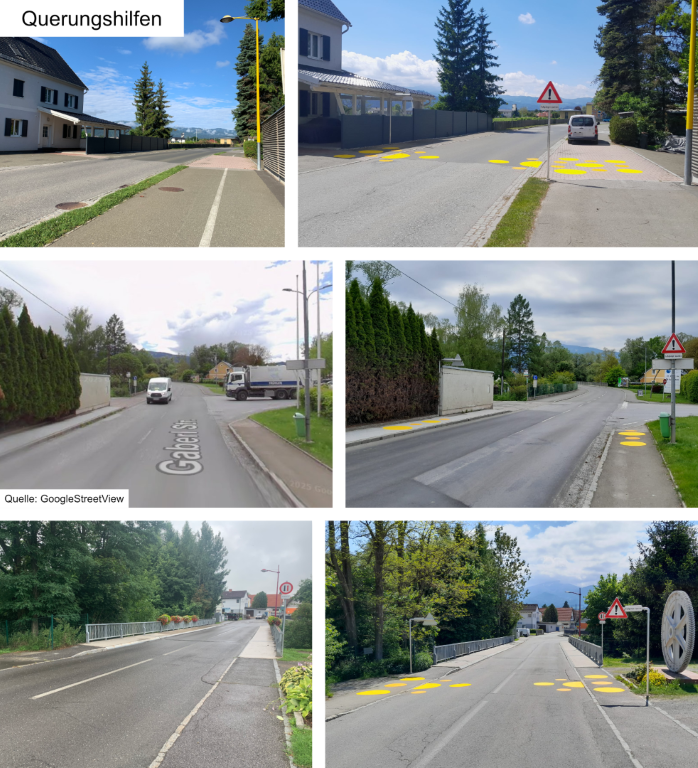 Zur Erhöhung der Verkehrssicherheit wurden zusätzliche Querungshilfen aus gelben Begegnungslinsen an drei wichtigen Standorten errichtet (Hauptstraße, Pfaffendorferstraße und L537 Zeltwegerstraße). Diese deutlich sichtbaren Bodenmarkierungen erleichtern das sichere Überqueren der Straßen. Im Zuge der umgesetzten Maßnahmen wurden außerdem Barrieren im Fußgängerbereich entfernt, darunter öffentliche Mistkübel und eine Telefonzelle, um mehr Bewegungsfreiheit auf Gehwegen zu schaffen.